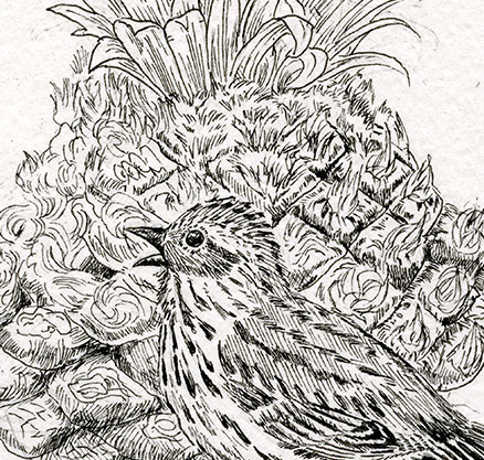 Original Drawing - Vesper Sparrow + Living Rock Cactus